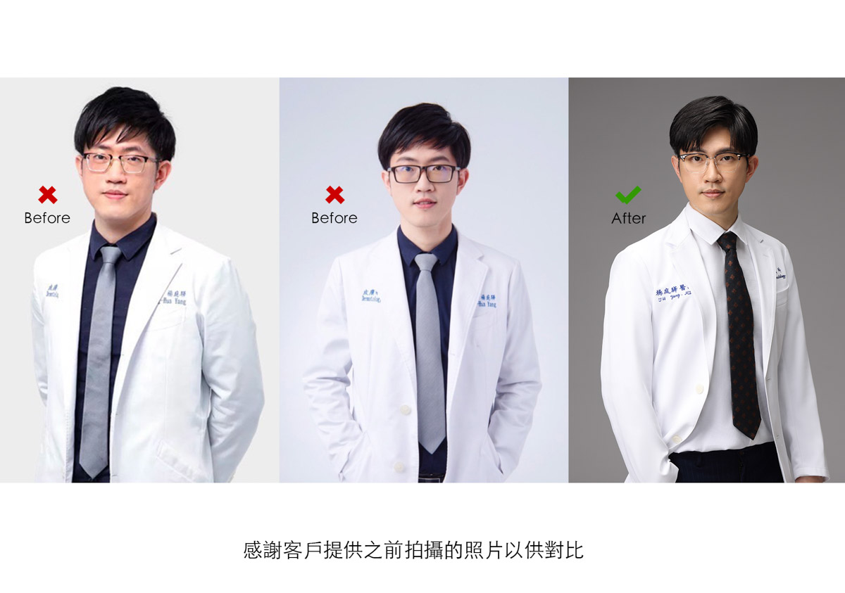 最自然的高階形象照 我們不是制式連鎖韓式相館 許多醫界權威、CEO、專業顧問、設計菁英選擇黑焦耳,是因為他們想要一張「像自己」的照片。不用浮誇的包裝,我會陪您聊聊天、放鬆心情,在對話間留下您眼神裡的溫度與真實的皮膚質感。這不只是拍張照,而是讓大家透過影像,看見您最真誠的專業自信。 親切自然、充滿自信、素人也能輕易上手 【專業形象照|高階人才品牌顧問】 專為醫師、CEO 與專業顧問打造的高階形象照。最具說服力的專業氣場,來自於「真實」。不用過度的「橡膠臉」AI濾鏡,透過攝影光線跟妝髪造型,與 1:1 真實毛孔肌理精修技術,為您打造充滿自信與歷練的領袖神韻。沒有生硬的擺拍,黑焦耳 擅長透過輕鬆的對話與情境引導,讓第一次面對鏡頭的素人也能卸下緊繃,展現您的從容自在。是您的朋友也是形象顧問,為您建構一份極具信任感、且不可替代的個人品牌數位資產。 Before vs After 自然感 100% up 專業感 100% up 妝髮造型 100% up 自然才是真正的魅力 我們不套版,透過有趣的引導,姿勢跟表情黑焦耳都會協助您,根據個人魅力打造最自在的自己 對比傳統相館的AI修圖與我們保留毛孔紋理的雜誌級處理,強調『真實才是高端質感的基礎』 1:1 放大皮膚真實質感 自然修圖 0 + 拒絕橡膠臉 0 + 攝影師很有經驗,您只要人到就好 很多客戶剛走進攝影棚時,都擔心自己不上相、面對鏡頭會很僵硬。別擔心,這非常正常。在這裡,你不需要刻意硬擠出笑容,也不用擺出不符合個性的動作。我們就像平常喝咖啡一樣聊聊天,在最自在的互動裡,我會幫你捕捉到那個連你自己都會喜歡的、從容自信的樣子。 是您的朋友也是形象顧問 為您建構一份極具信任感、且不可替代的個人品牌數位資產。 Before vs After 一目瞭然! 修圖不失真、價格透明 Before vs After 專業 形象照 拍攝費用 價格方案 信賴三保證: 1.拍完滿意才收費 2.事前群組溝通 3.提供校稿修改 單張費用說明 用途類型 2百萬畫素(網路) 2千萬畫素(輸出) 4.5千萬畫素(超大輸出) 半身照 2900/張 3500/張 6000/張(團體-7500/張) 全身照 3200/張 3800/張 四人以下團體照 4000/張 5000/張 *加挑優惠:滿二張95折,滿三張85折,滿五張8折,滿八張75折 *免費使用工作室攝影棚,市值$3000 (台北市大同區承德路三段107號4F,預約制,捷運民權西路站五號出口步行 5 分鐘) *可加購身分證照/護照/各類證件照 $1000張,簡易去背 $300張/高階去背 $800張 *可搭配專業造型師打理:女生 $3000,男生 $2500 (皆含臉妝+髮型+修眉+畫眉+抓髮),跟妝補妝$1000/hr *不同畫素,用途也不同 (詳見最下方建議) 妝髮包套方案 2百萬畫素 A方案 B方案 C方案 攝影 半身兩張 半身三張 六張/無限制全身半身 造型 髮妝一組 髮妝一組+跟妝(可拍2套) 髮妝兩組+跟妝(可拍3套) 原價 8800 12700 23200 打卡優惠 7800 10800 16800 雙人同行 7000/人 9800/人 15800/人 *包套方案皆可升級輸出用2千萬畫素$500/張(加強毛孔膚質修圖) *可加購身分證照/護照/...各類證件照-$1000張,簡易去背$300張/高階去背$800張 *免費使用工作室攝影棚,市值$3000 (台北市大同區承德路三段107號4F,預約制,捷運民權西路站五號出口步行 5 分鐘)。可照片版權買斷,另議 *版權聲明:享受優惠價即同意作品可放置官網網,工作室都會有自然著作權,如果需保留隱私,我們都可以配合,請務必提醒我們。 如何選擇適合的畫素? 2百萬畫素 (數位):履歷、網站、社群、LinkedIn 2千萬畫素 (印刷):文宣、海報、雜誌、印刷品 4.5千萬畫素 (商業):巨型看板、燈箱廣告、展場背板。 感謝客戶提供前後對比形象照 你會找哪一位看醫生呢? 哪一邊看起來才是專業人才顧問呢? 形象照 比較圖6 Images 專為醫師不同科別設計 從您的需求開始,完美配合您的科別與專業的形象照 形象照作品集 專業形象照 推薦 形象照與證件照的區別?造型師資歷為何? ▼ 打造您的職業視覺名片 不同於傳統快照或證件照的呆板,我們專注於「非語言溝通」的影像力量。透過精準的光影勾勒,將您的專業高度、親和力與信賴感具象化,讓這張作品成為您在商務競爭中,最強而有力的個人品牌門面。 跨越 30 年的妝髮藝術與權威認證 王牌造型師 巫葳葳 擁有超過 30 年的美學實戰經歷,具備國家美容及美髮雙乙級講師證照,並取得韓國首爾藝術大學整體造型講師認證。其細膩的梳化風格深受國際品牌青睞,曾擔任 FENDI 亞太總經理指定造型師。她不只是單純的上妝,更是依據您的骨骼結構與臉部特質進行精準的「視覺微調」,確保在棚燈光影下,呈現最完美的個人氣質。 拍攝引導流程與時程預算說明。 ▼ 告別面對鏡頭的尷尬 您不需要具備模特兒般的表現力,攝影師 Jerry 擅長以輕鬆的對話化解緊張。我們會引導您在放鬆的狀態下自然流露神韻,捕捉那些瞬息即逝的眼神與自信。 現場挑片與面談機制:確保需求精準達成 為了讓成品完全符合您的期待,我們極度重視「現場挑片」環節。在拍攝完成後,您將與團隊當面直接溝通審美喜好與具體細節需求。透過面對面的即時反饋,我們能精準鎖定您對作品的要求,現場確認所有細節,確保最終產出的影像能完美展現您的職業氣場。 時程預估 (含完整造型時間) A方案預計 1.5 小時;B方案 2 小時;C方案則為 3 小時。請於預約時間「準時」抵達即可。如果您拍攝完畢另有其他行程,建議多預留 30 分鐘的從容緩衝,讓體驗更優雅。 影像處理時程